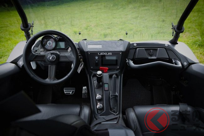 2人乗りのコックピットは、レクサスの「Tazunaコンセプト」に基づいて設計。ドライバーが運転に集中できるよう、メーターはシンプルな表示方法を採用したほか、シートには耐久性に優れた合成皮革が使用されるとともに、サスペンションエレメントを内蔵しています。