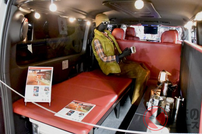 毎回ハイエース向けの商品が多数見られる東京オートサロン。ハイエース系のアクセサリーパーツを多く取り扱う「GIBSON」では、ハイエース用の「GRAVISキャンピングキット」と「GRAVIS/GRAFAMベッドキット」を大々的に展示していました。
