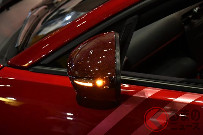 特に来場者の注目を集めていたのは、西陣織で編み込んだカーボンを使用したボンネットとフェンダーを装着するGR86。このGR86には、「ヴァレンティ」の新製品であるGR86/BRZ用のヘッドランプとドアミラーウインカーが装着されていました。
