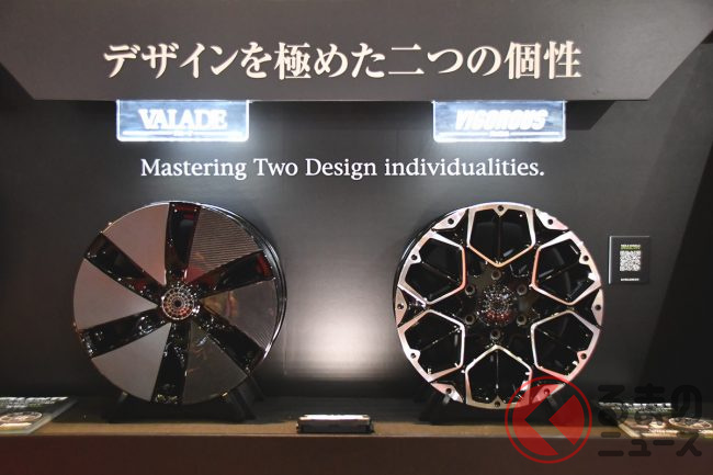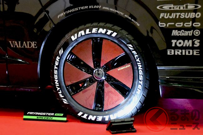 初製作のタイヤである「フライングスター」は、ホワイトレターが施されており、ドレスアップ性も高く、偏摩耗にも優れているそうです。ホイールは、ハイエース専用設計で、デザインは「ヴァレード」と「ヴィゴラス」の2パターンが用意されていました。
