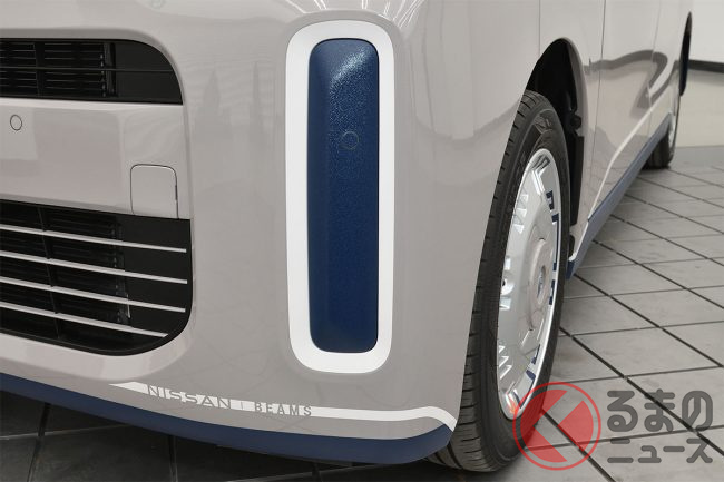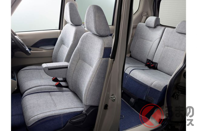 日産が新型「超オシャレ軽ワゴン」を実車展示! 斬新すぎる「高級ジーンズシート」とシャレブルーのアクセントがイイ! 「ルークス×BEAMS」コラボモデルをお披露目
