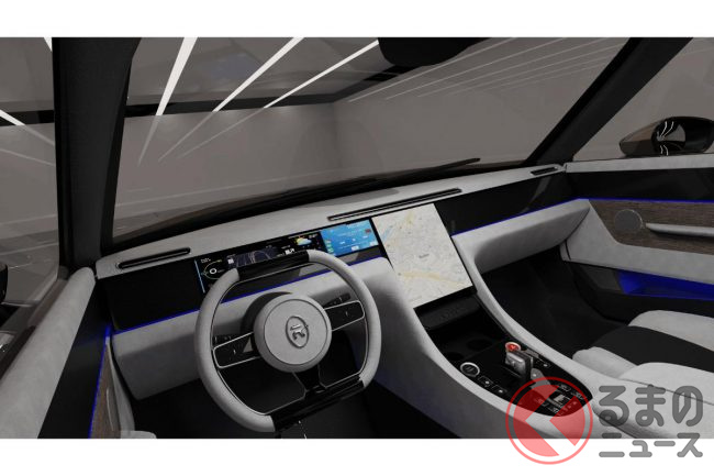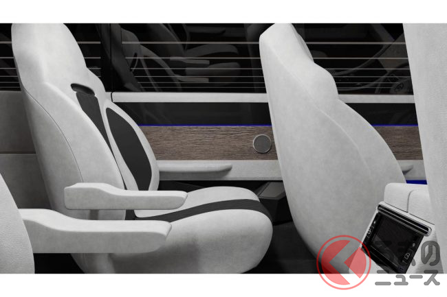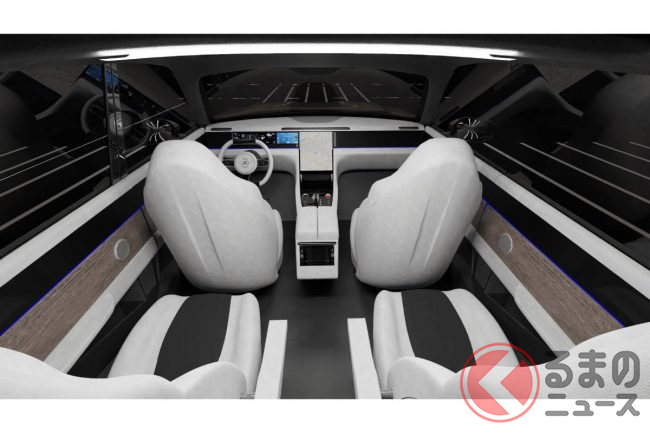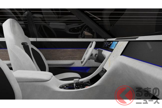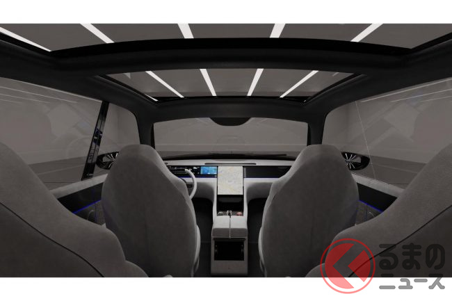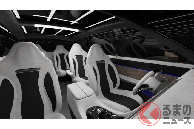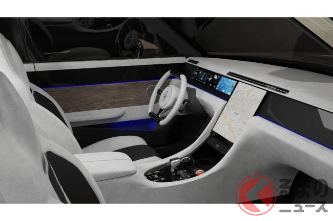インテリアには、縦長の大型ディスプレイが目を引く先進的なデザイン。3列シートは個別に分けられ、定員は6名のようです。
