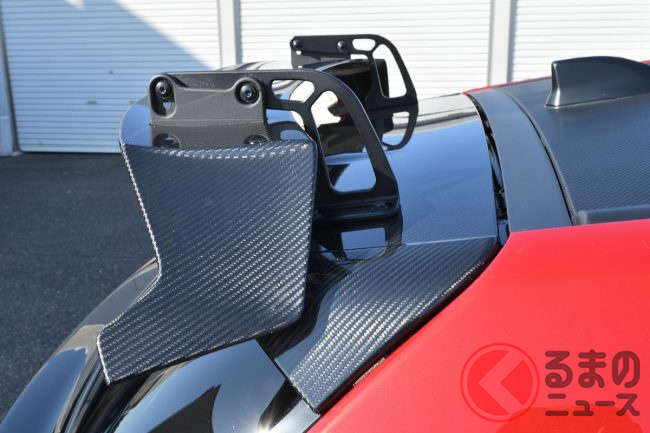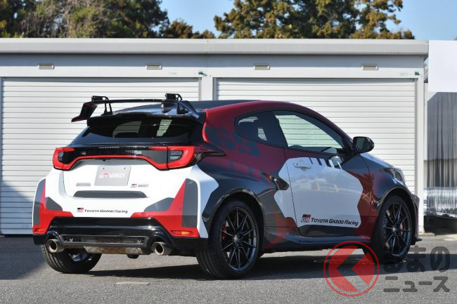 一方のロバンペラEditionは、競技参戦時に使用するヘルメットのデザイナーによるデザインの「三色塗装」を採用する他、「GRMNヤリス」と同じリアスポ イラー(可変ウイング/CFRP製)を採用することで、空力特性を改善しています。