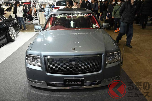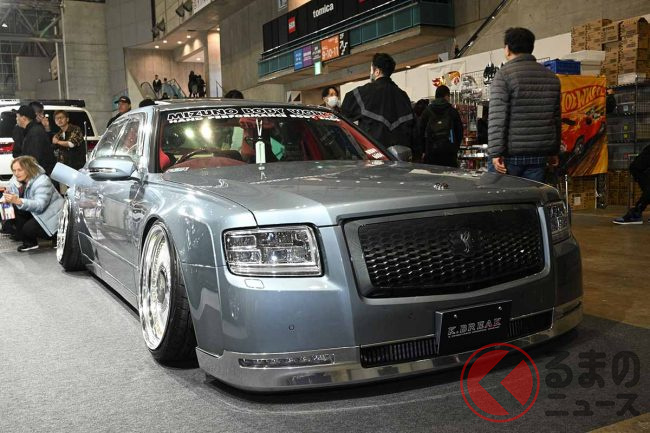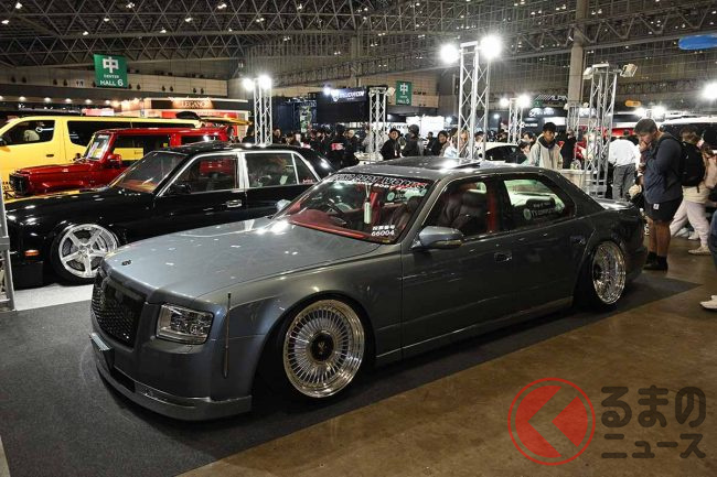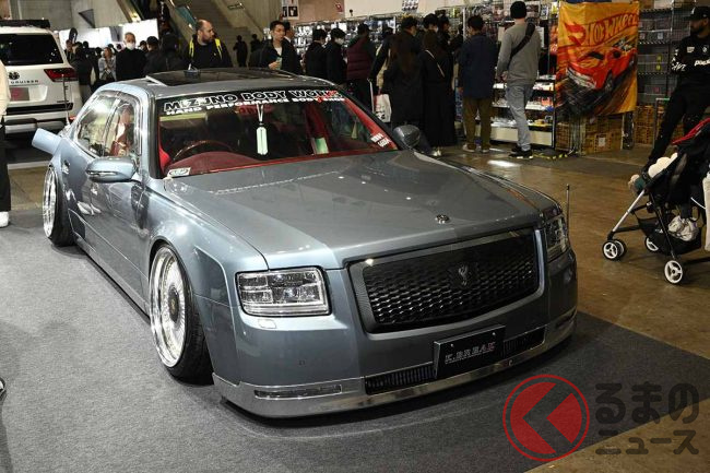 2024年1月12日から14日、千葉市美浜区の幕張メッセでカスタムカーのイベント「東京オートサロン2024」が開催。各種エアロパーツの企画・販売などを手掛ける「K-BREAK」は、トヨタ「セルシオ」と「センチュリー」を組み合わせた新型「セルチュリー」を会場に展示しました。