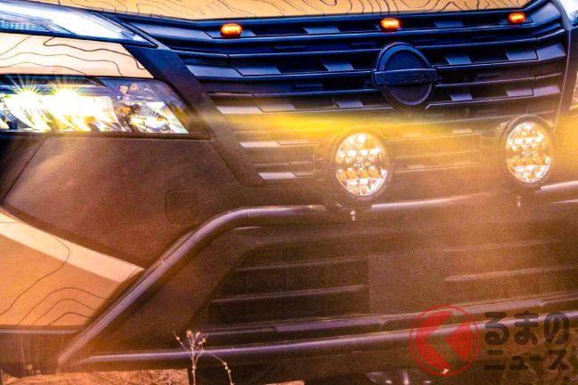 日産「新型SUV」実車公開! センターマフラー採用の“極タフ仕様”! ド迫力ブラックグリルの新型「エクストレイル」とは