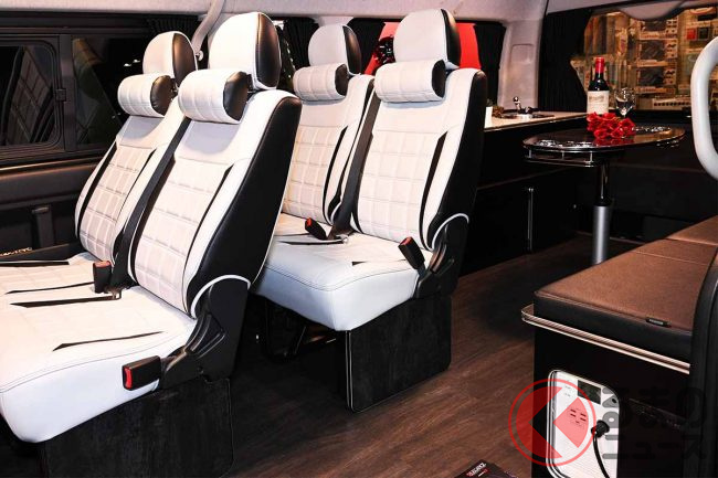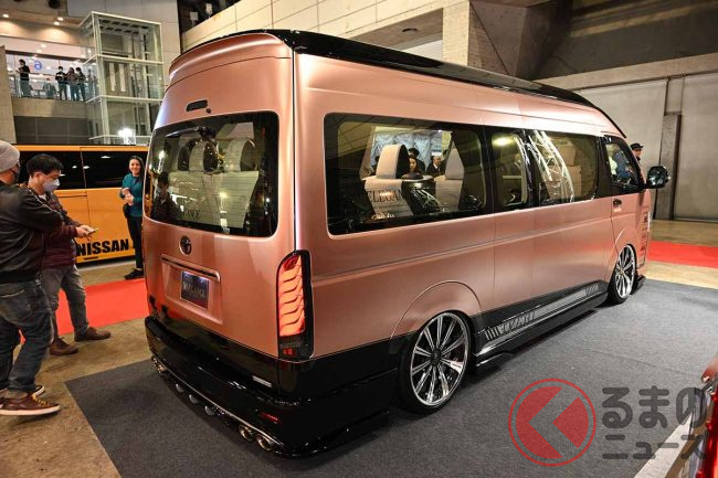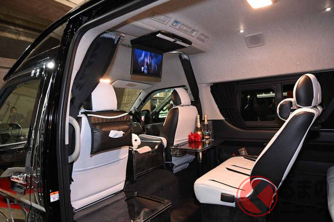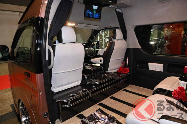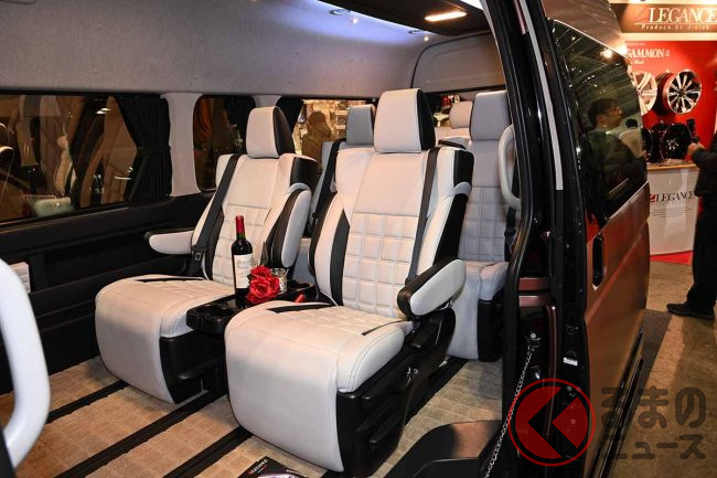 トヨタ「ハイエース“極上おもてなし仕様”」実車登場! 超豪華“高級クラブ”内装に反響集まる 約600万円&10人乗りのLEGANCEミニバンとは