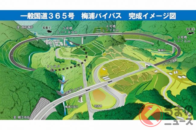 福井に新たなループ橋! 国道365号梅浦BPが3月開通 くねくね難所を“ゆったり&ぐるーり”通過