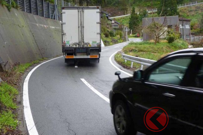 県によると、急勾配でもあることから、大型車のすれ違いが困難で安全な通行に支障をきたしているといいます。