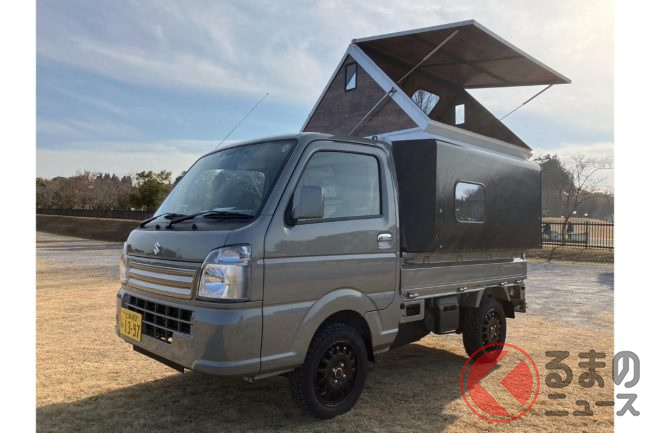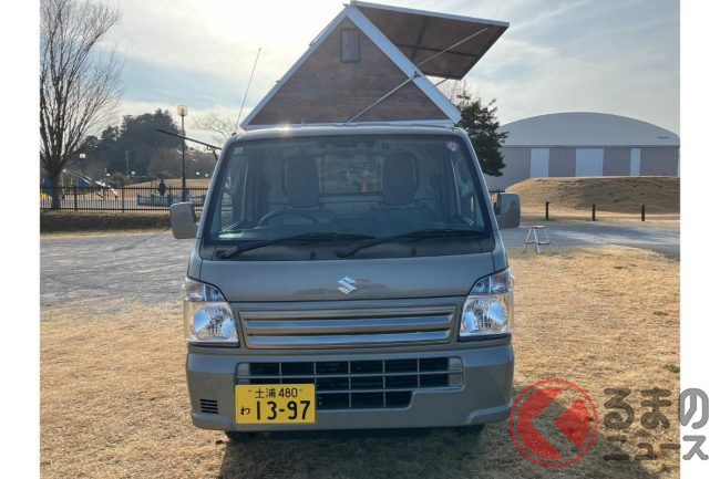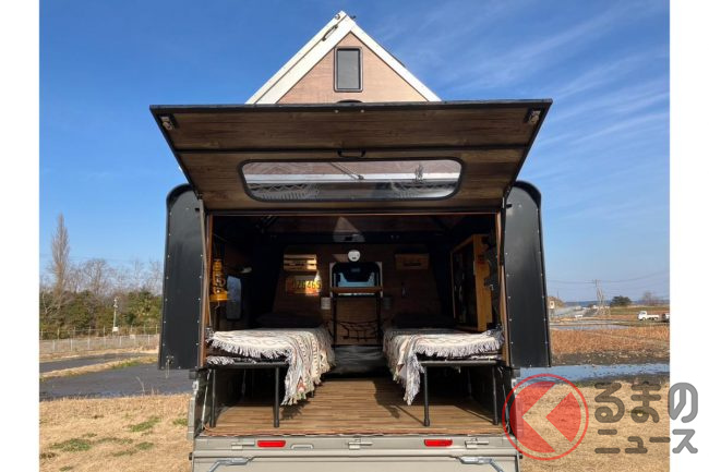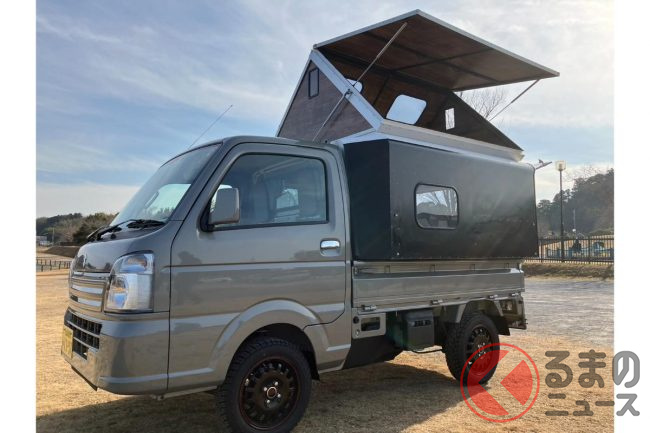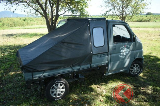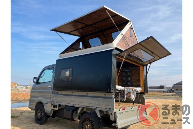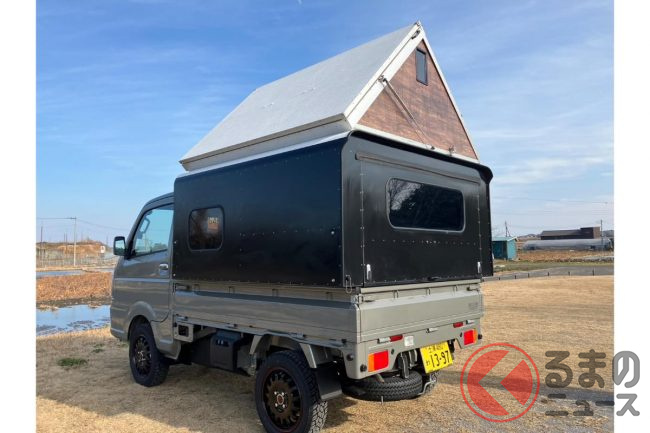 斬新過ぎる!? 軽トラの「荷台泊仕様」がスゴい! 謎の「ニンジャスタイル」 魅力は?
