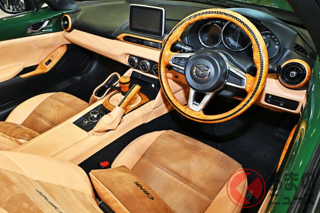 マツダ「ロードスター レトロ仕様」に大反響! “旧車”風オシャグリーン×タン内装の上質カスタムでめちゃオシャレに! 「初代ロードスター」再現で称賛の声集まる