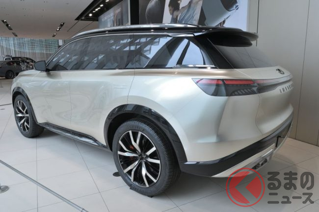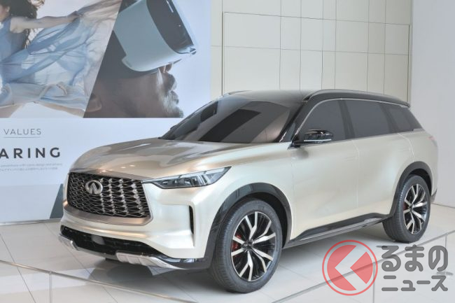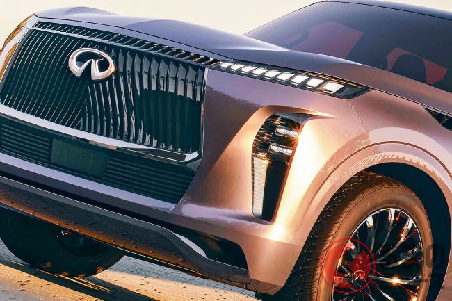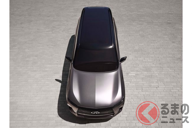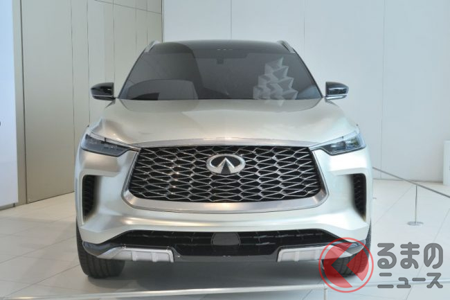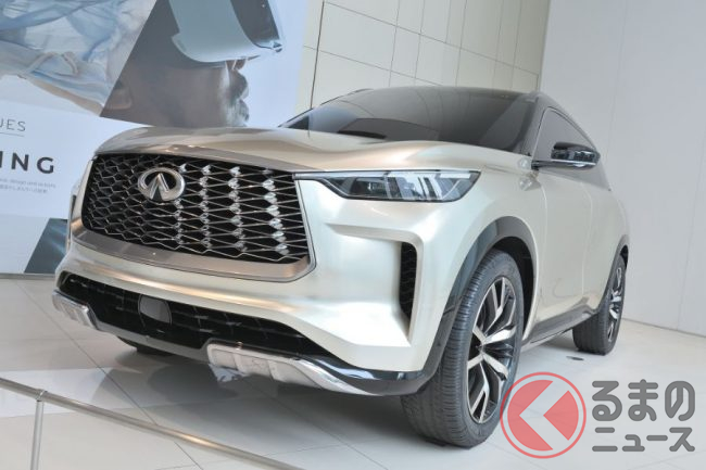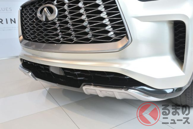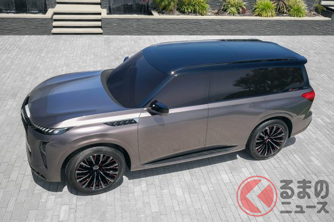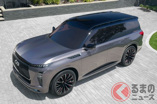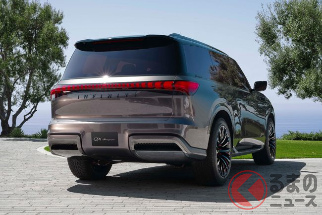 日産が新型「最大・最上級SUV」初公開へ! “和”テイストの斬新ワイドテールが「まぶしい」! 「V8搭載SUV」の次期型モデル示唆する「QXモノグラフ」カナダに登場