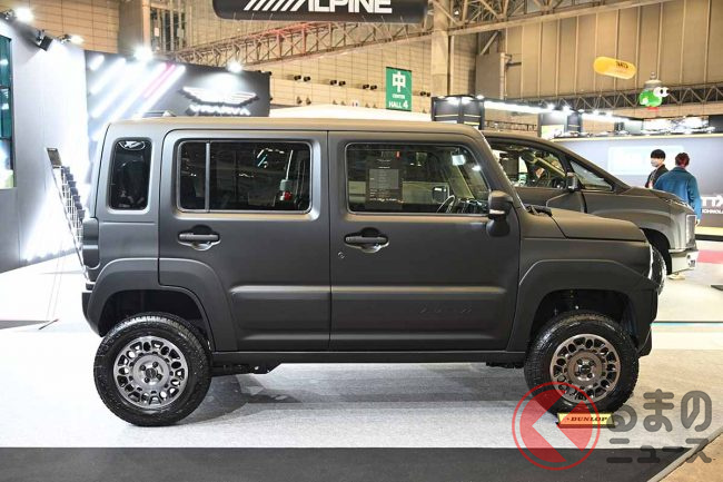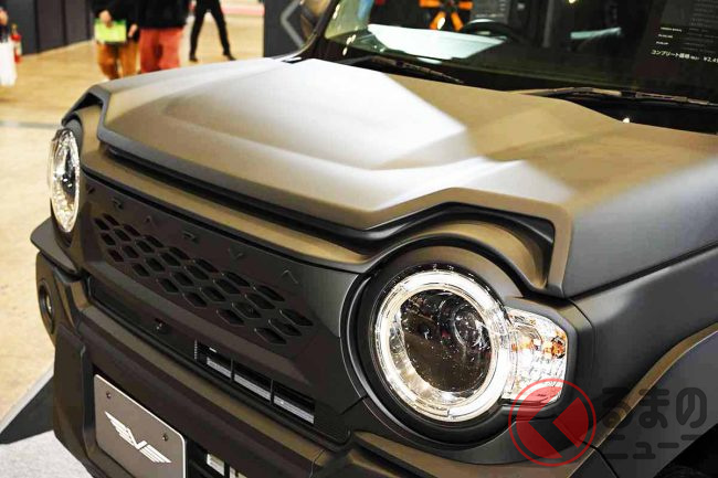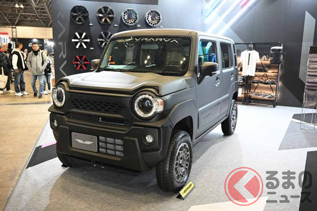 ド迫力の新型「“軽”SUV」実車展示! アンダー250万円のスズキ「ハスラー」カスタムマシンが近未来すぎ! ブラーバ第3弾「イオ」とは