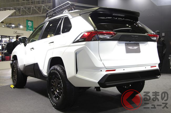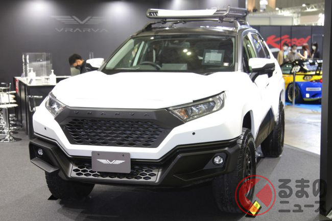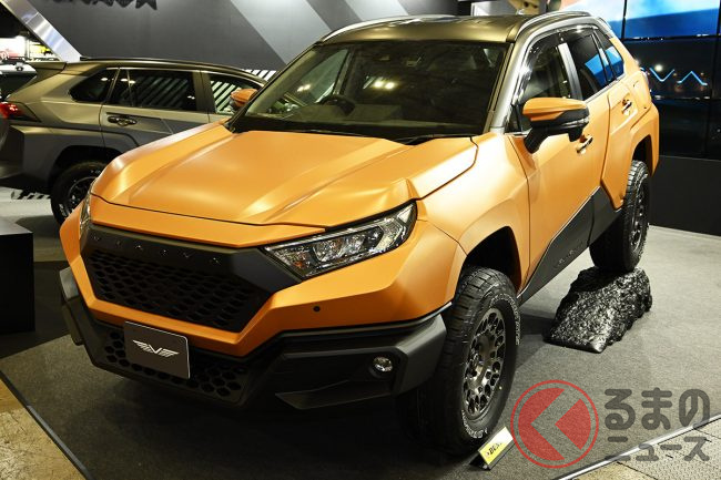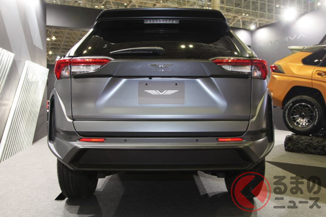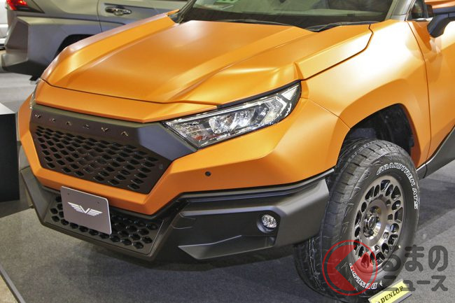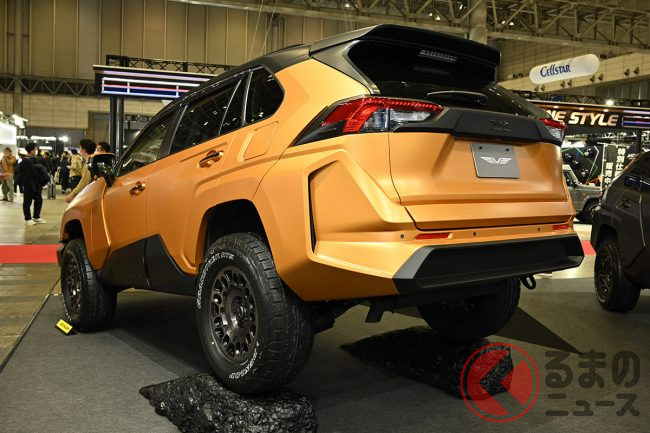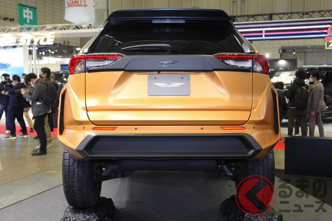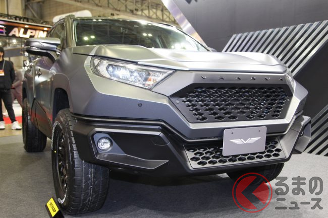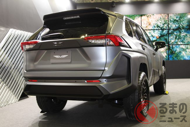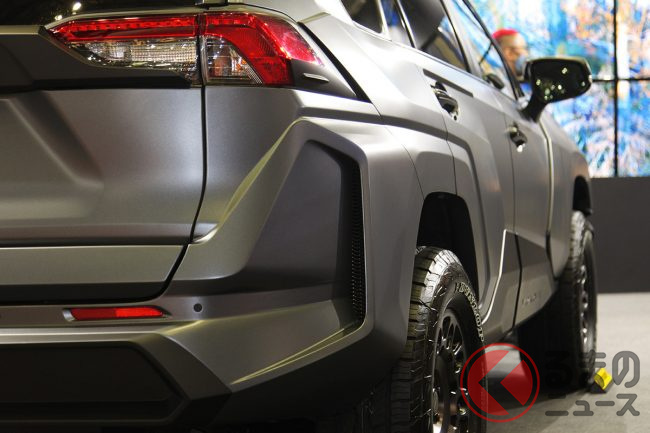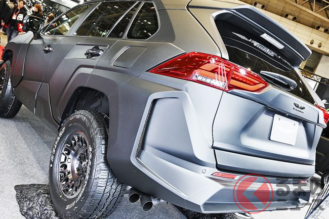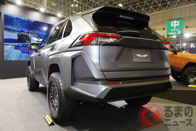 メカニカルさとミリタリーテイストを融合したデザインで、12のパーツに分かれたボディキットが装着されており、ベース車のトヨタ「RAV4」のイメージは完全に払しょくされています。