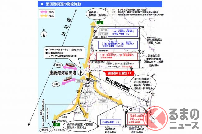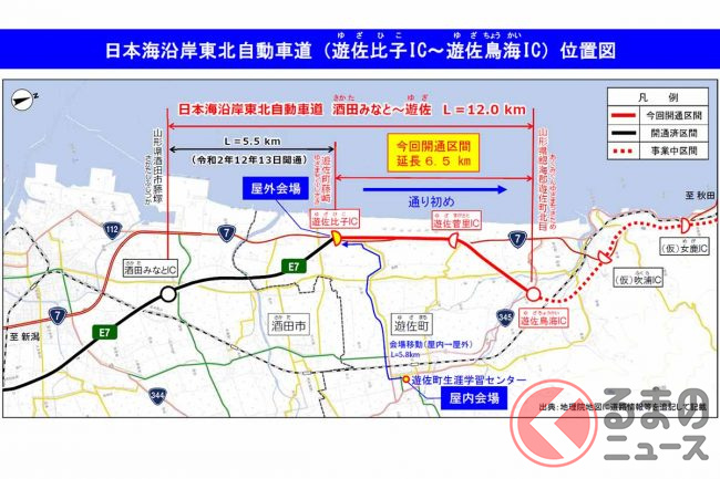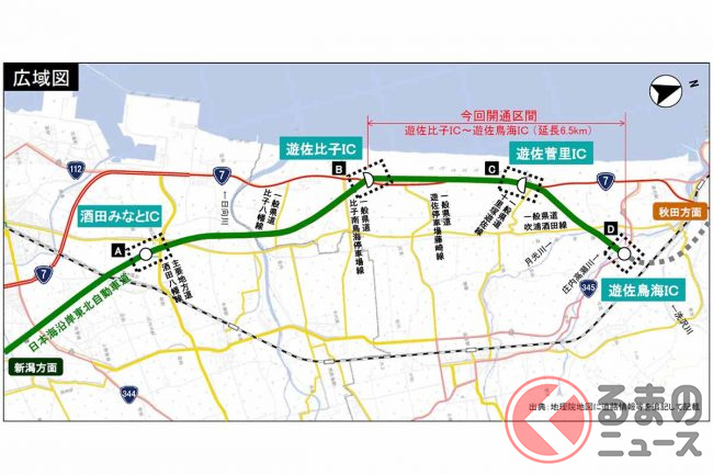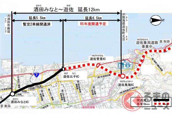 無料の「日本海東北道」山形で3月延伸! 現終点の遊佐比子ICは形態を変更 秋田への「県境越え区間」はいつ開通?