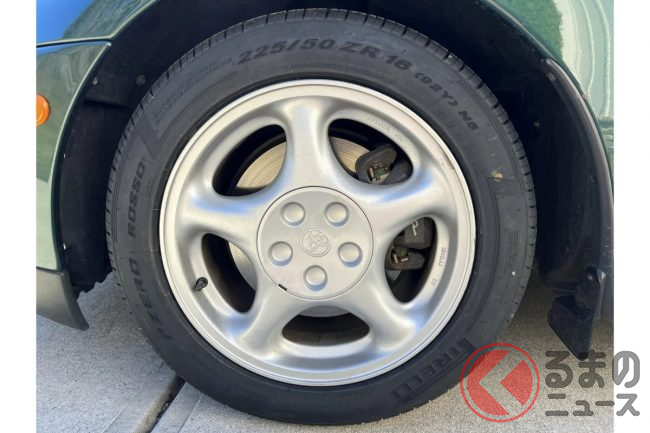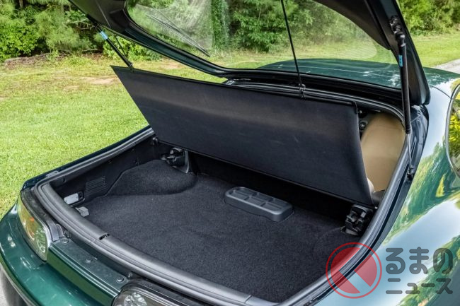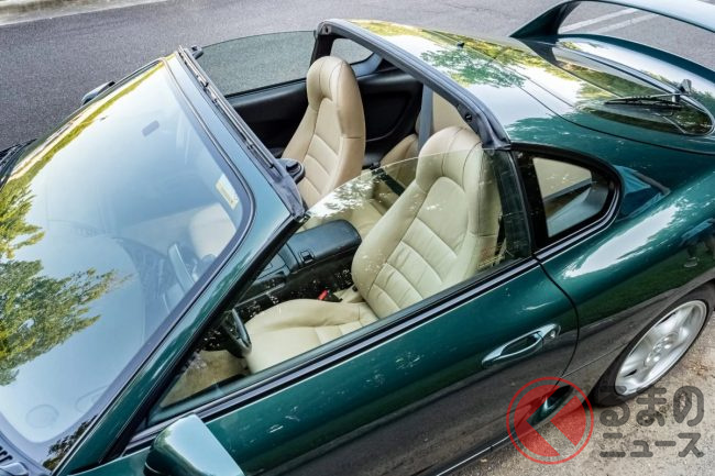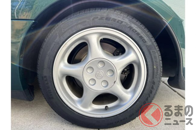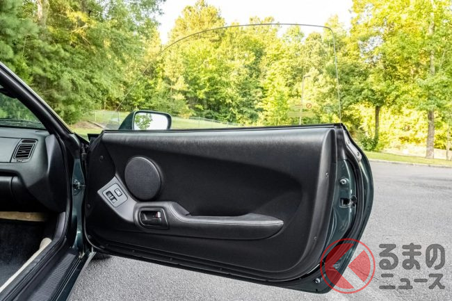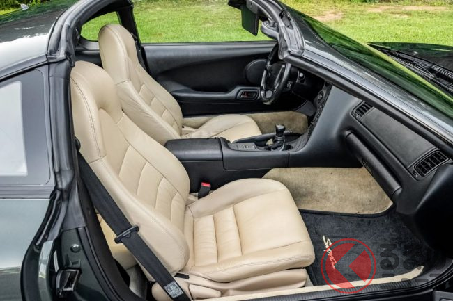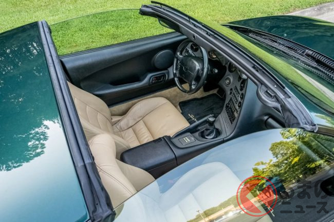 エクステリアは日本国内に設定のない「ディープジュエルグリーンパール」で、左フェンダーとリアバンパーに傷があることを除き、塗装面の艶も十分に残っているなど、27年が経過したとは思えない綺麗な状態を維持しています。