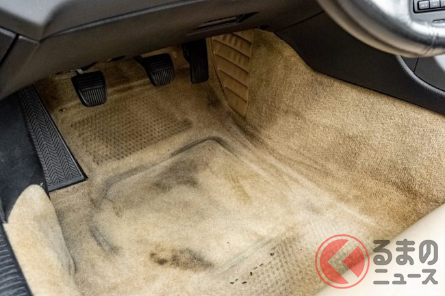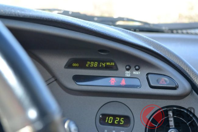普段の乗車で汚れが目立つベージュのフロアマットも清潔に保たれ、インパネやステアリングも白化やヒビなどは見られず、かなり大切に扱われてきたことがわかります。