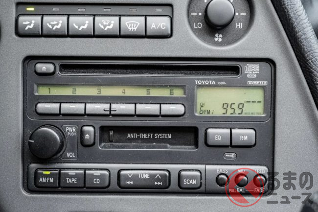 メーターやエアコンなどの表示パネルも表面に傷が少なく、純正のCD・カセットプレイヤーが残されているなど、純正状態が維持されていることも貴重といえます。