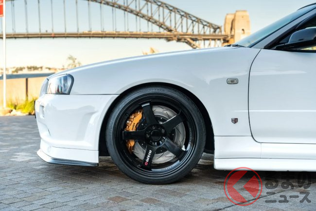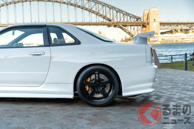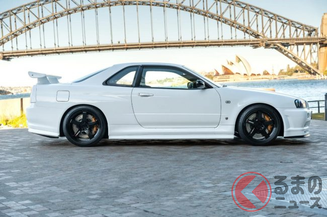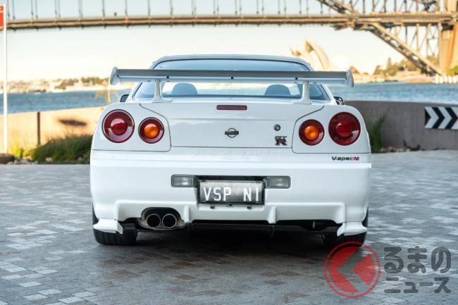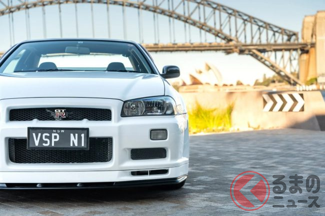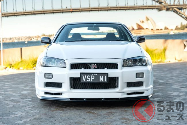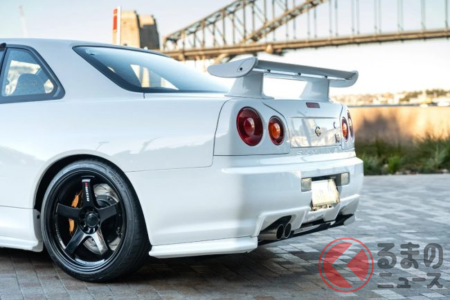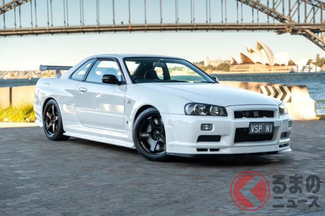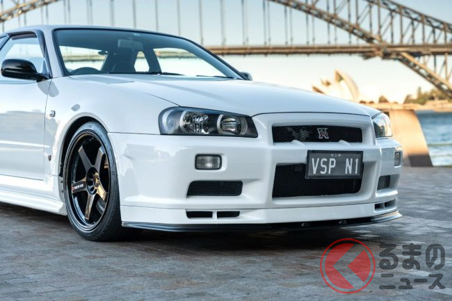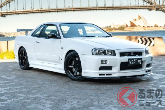 衝撃の4700万円! 日産「R34 GT-R 最速モデル」出現! 14万キロ超えなのに…なぜ高額? 真っ白ボディのスゴい「スカイライン」が豪で落札