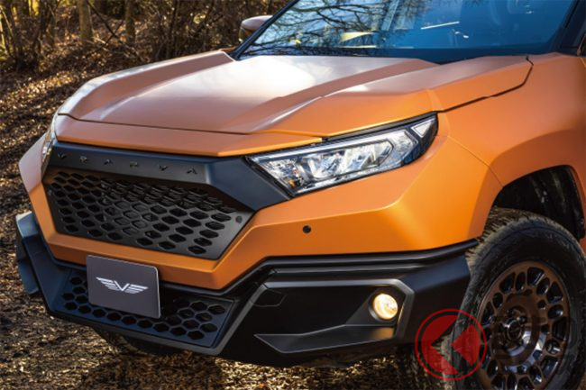 シリーズ第1弾の「MARS(マーズ)」は、トヨタのクロスオーバーSUV「RAV4」をベースに、ウィンドウやルーフ、ライト類を除いたすべてにボディキットを装着。標準のRAV4とは大きくかけ離れたデザインへとイメージチェンジを果たし、まさに“装甲車”といった姿となっています。