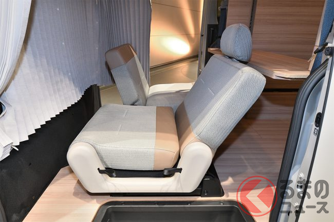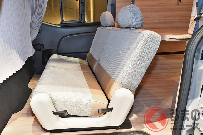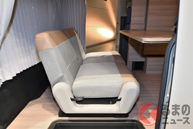 しかもシート表裏でクッションの柔らかさを変えているので、ドライブモードとベッドルームモードは硬めの面に、ソファリビングルームモードは座り心地の良い柔らかい面と、異なる要件を両立させているのはちょっとした「発明」といえそうです。