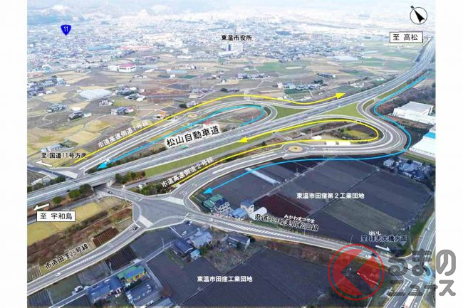 松山道「東温スマートIC」3月開通! 狙いは“交通分散”だけじゃない!? 通行料金は?