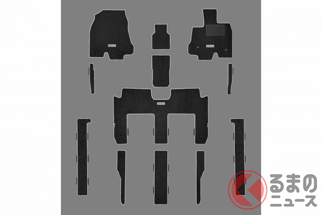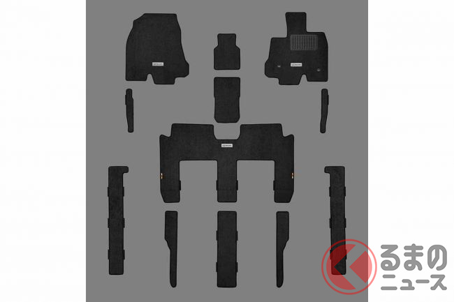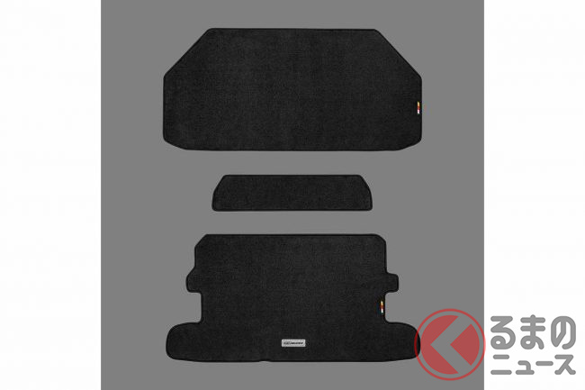 スポーツラグマットは、スポーツマットと同様の素材を採用し高い質感と耐久性を実現しています。これも無限のエンブレムが付いており、カラーは「ブラック」と「ブラック×シルバー」を設定。1台分3枚セットで、両モデルとも3万5000円(消費税抜き)です。