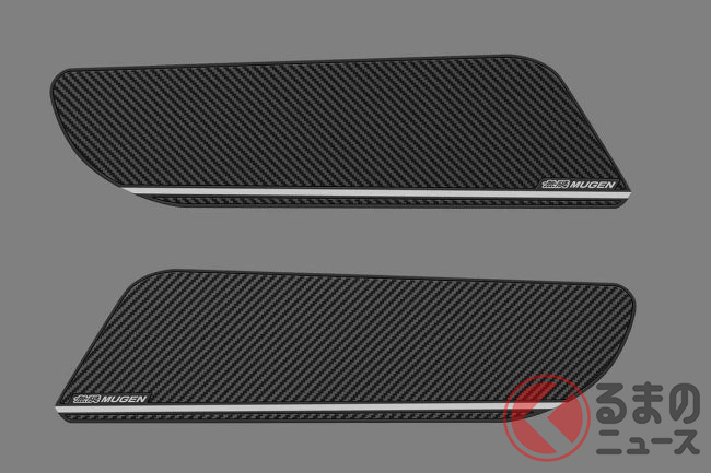 カーボンフロントグリルガーニッシュは、標準装備のフロントグリル上部に被せて装着するタイプで、これも素材はドライカーボン製UVカットクリアコート仕上げとなっています。無限MUGENの文字が入っており、ひと目で無限製品とわかり高級感と個性を高めます。価格は15万円(消費税抜き)です。