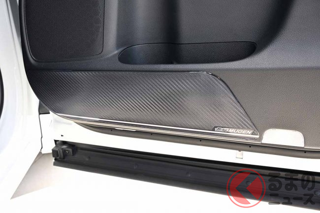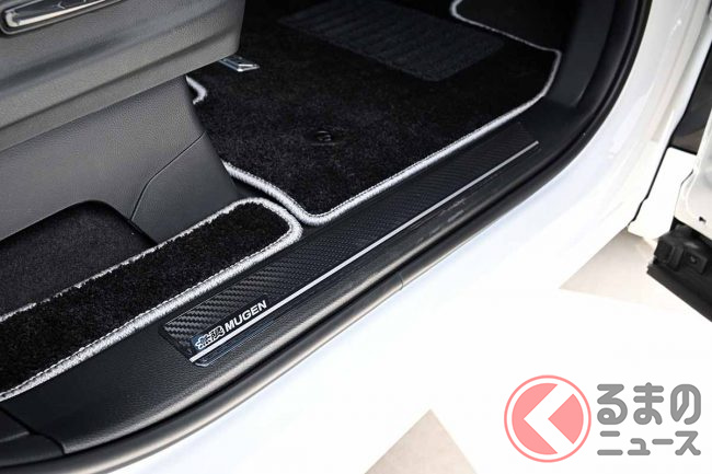 また、ドアインナープロテクターとスカッフプレートも用意されており、乗降時に発生する傷を防止できます。これはカーボン調のデザインがされており、無限のロゴが記されています。