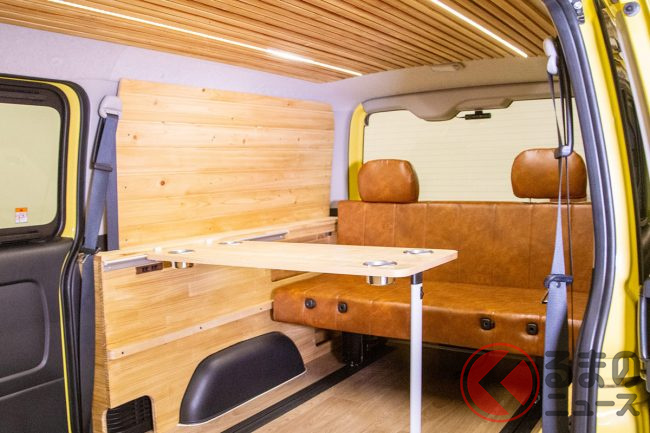 折りたたみテーブルを使った休憩やベッドマッドによる車中泊、後席を後ろ向きでの対面仕様など、様々なギミックも用意されています。