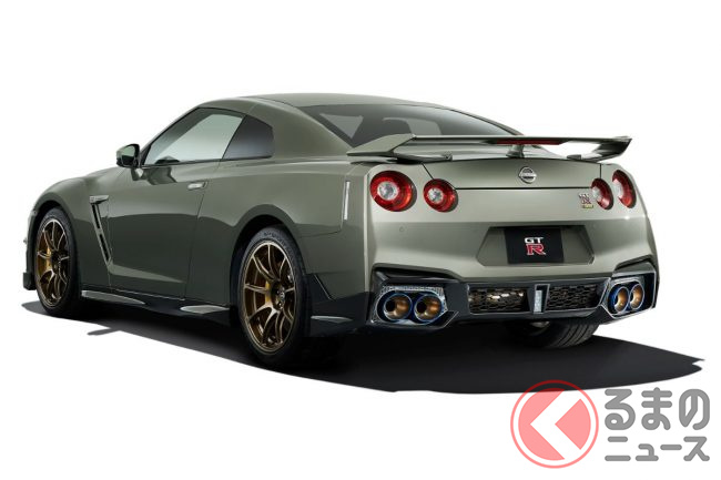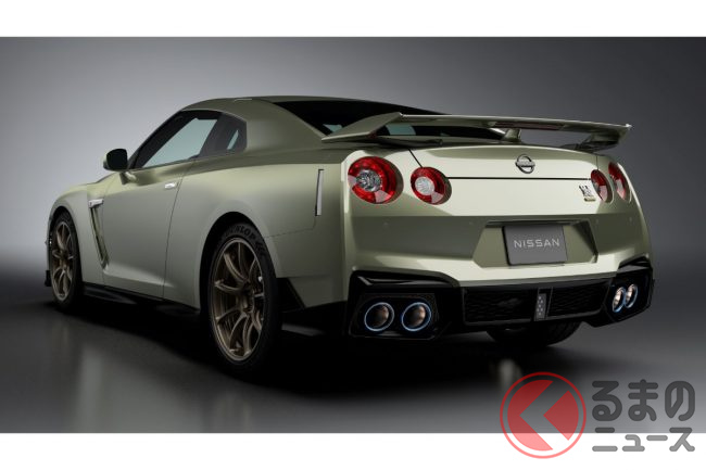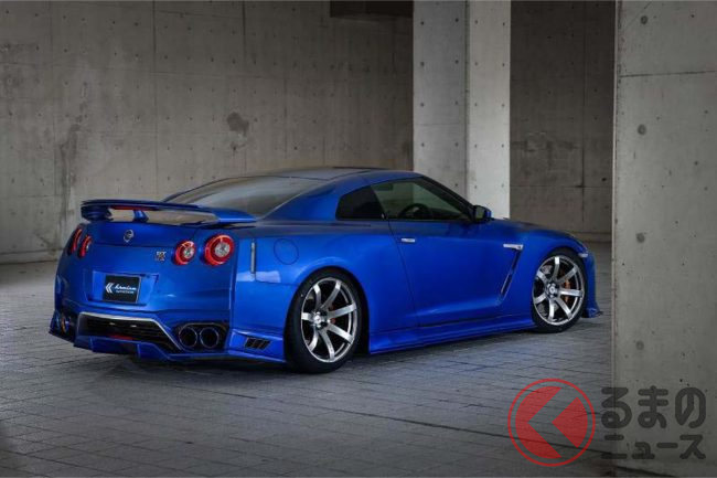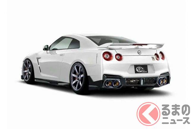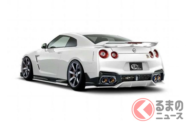 ド迫力ワイドな日産「新型GT-R」初公開! 極太センターマフラー&巨大ウィング装備に「かっこいい」と反響も! ゴールデンな“新旧融合モデル”爆誕