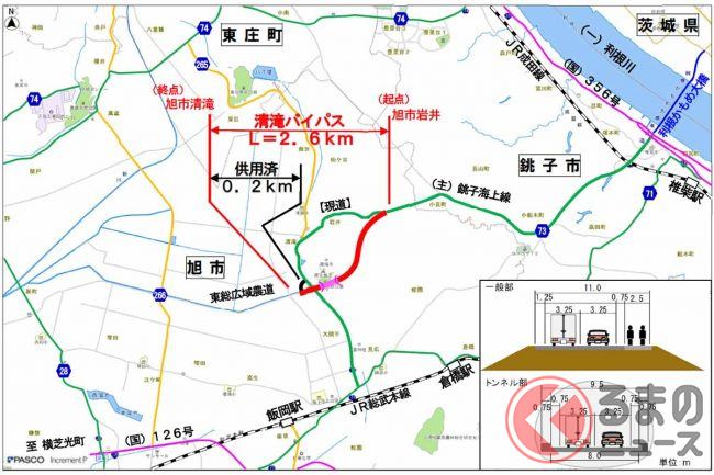 千葉県は2024年2月9日、旭市で建設を進めてきた県道73号銚子海上線の清滝バイパスが、3月13日15時に開通すると発表しました。