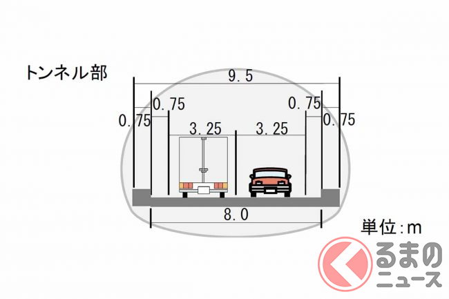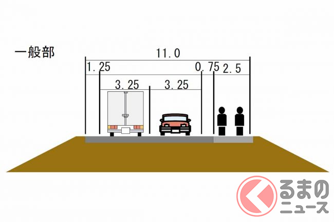道路は幅員11.0m、車道2車線です。途中、清滝トンネル(0.4km)を通ります。