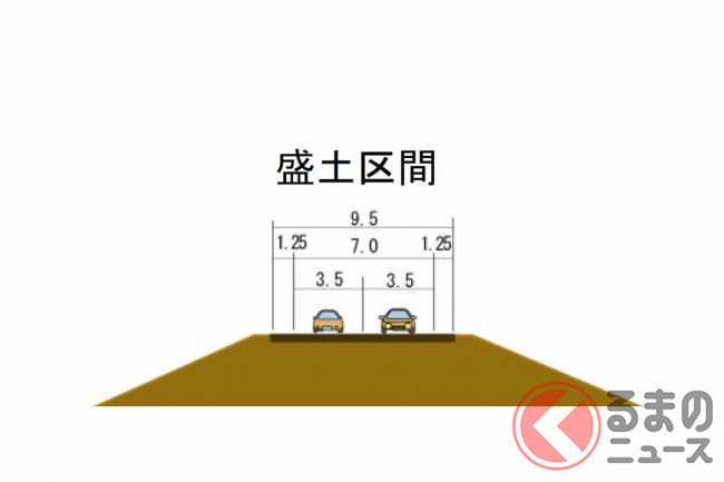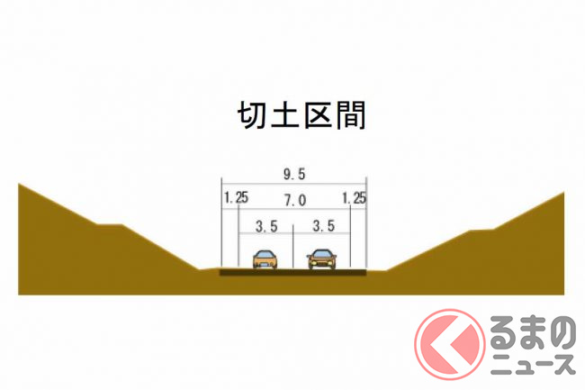 事業費は約173億円。道路は幅員9.5m、車道2車線、設計速度60km/hで整備されます。