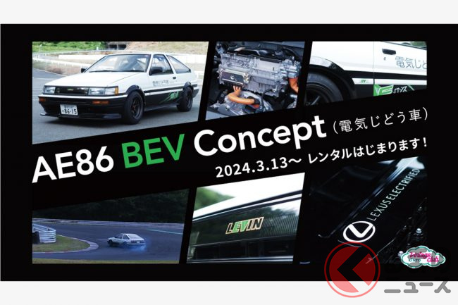 KINTOは2024年2月13日、旧車コミュニティー「Vintage Club by KINTO」にて、トヨタが東京オートサロン2023および2024で公開した"電気じどう車"である「AE86 BEV Concept」に実際に乗れる企画の実施を発表しました。