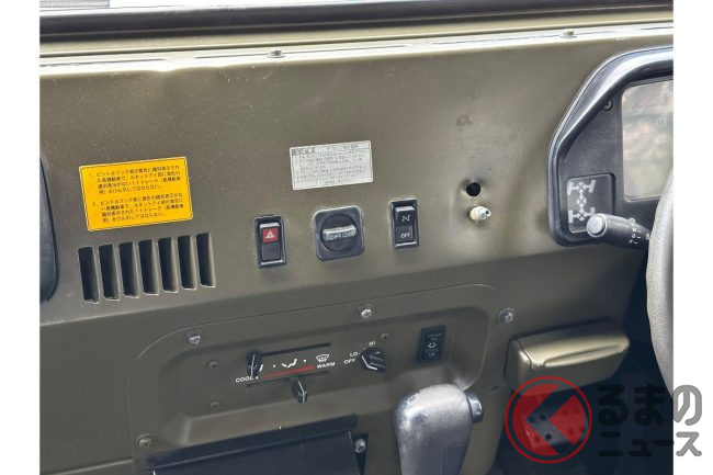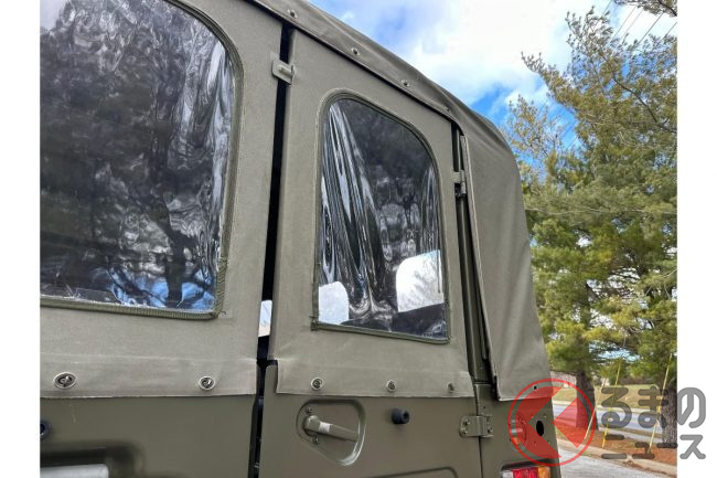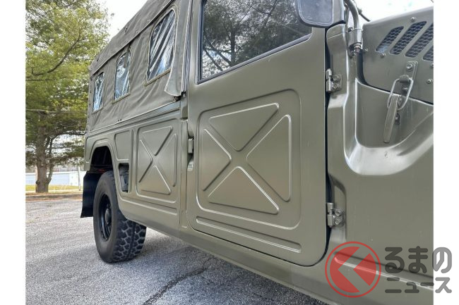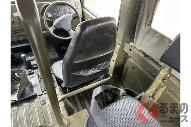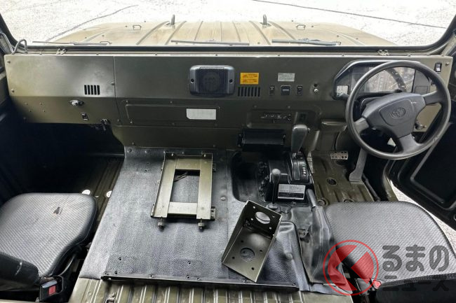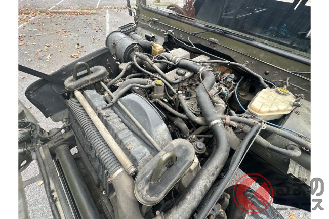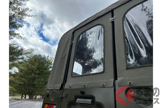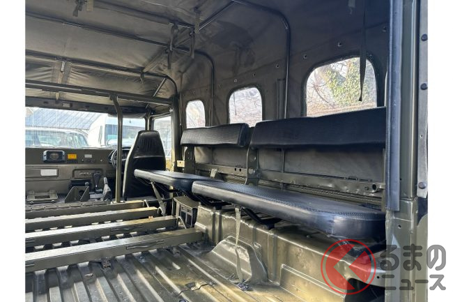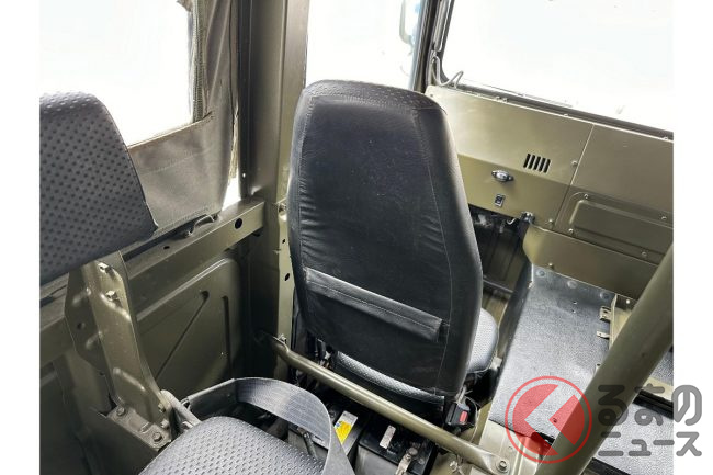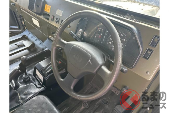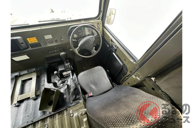 状態は外装の塗装ムラや幌の汚れ、下回りのサビなどがあるものの、自衛隊として使われていたことからかメンテナンスは行き届いており、不必要なカスタムなどが施されずに純正状態で維持されているようです。