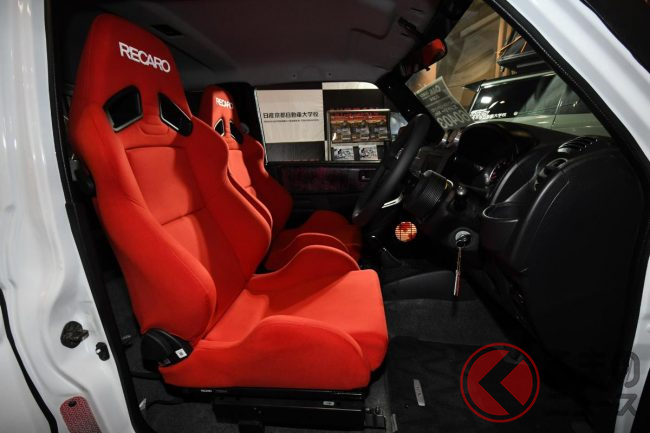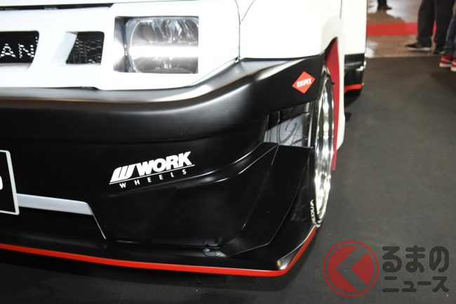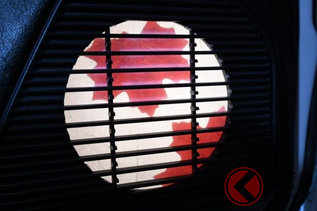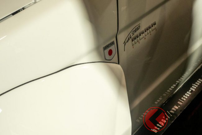 フロントライトは日産社外の物を使用。さらにAピラーからルーフにかけては、刀をイメージした装飾を施すなど、細部に“日本”へのこだわりを感じる作りになっています。