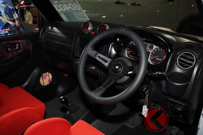 またラリーカーらしい大型のリアウィングを装備。こちらはかつて日産が生産していた「パルサー」のリアウィングをイメージしているそうです。