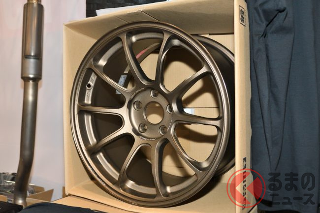 大阪オートメッセ2024の同社ブースでは、現在では廃盤となったレイズ製アルミホイールの「ZE40」を同社限定のオリジナルサイズで復刻したモデルや、同社オリジナルサイズの「TE37 SAGA S-plus」も展示されていました。