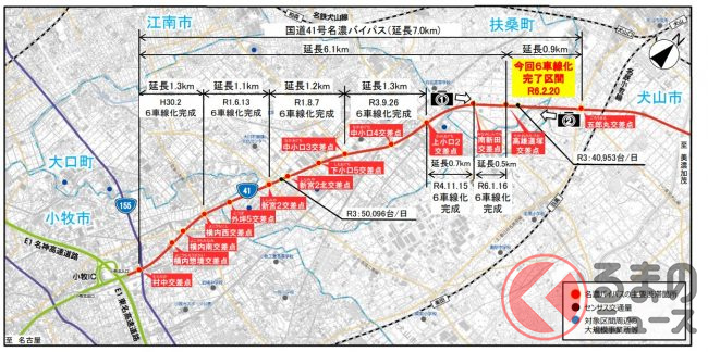 名神小牧から犬山まで「国道41号名濃バイパス」6車線拡幅が完成! 高速道路が無い「大渋滞区間」ようやく対策完了