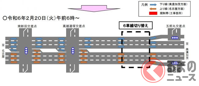 最後の工区の6車線切り替え日時は、2月20日朝6時です。