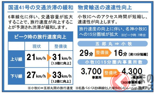 愛知県小牧市~犬山市で整備中の国道41号「名濃バイパス」の6車線拡幅工事が、いよいよ全線完成を迎えます。どのような効果があるのでしょうか。