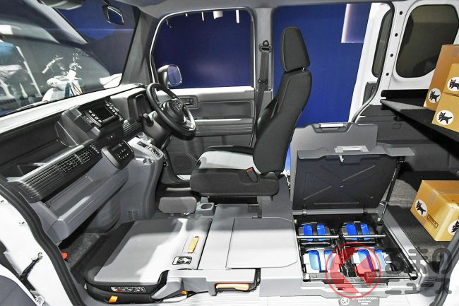 小型電動アクスルや大容量の薄型バッテリー採用によって、N-VANの特徴である低床構造と左センターピラーのない大開口部、フルフラットに格納できる助手席など利便性の良さを踏襲しています。
