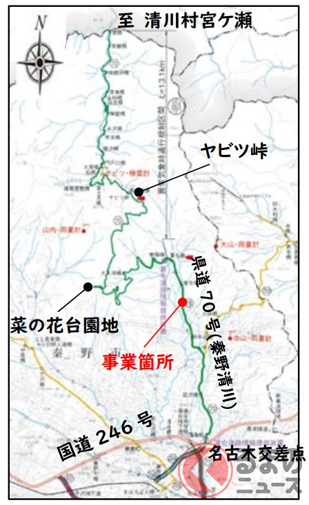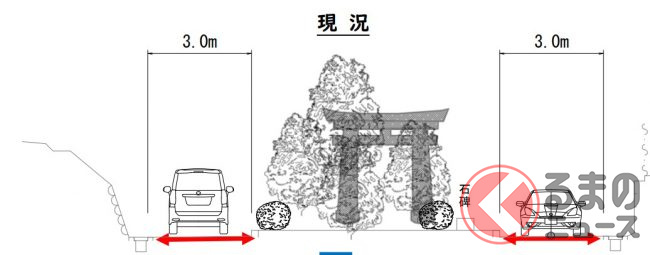とはいえ、突然目の前に現れた障害物をよけきれずに衝突事故が起きる例も報告されており、課題となっていました。また地元から歩道設置の要望があったことから、今回、道路改良でこの危険な状態が解消されることとなったのです。