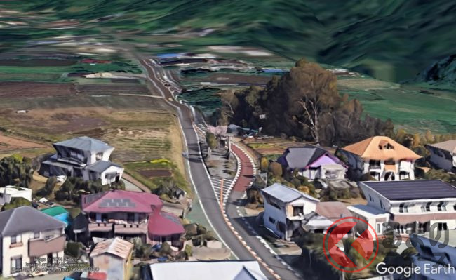このような例は、兵庫県西宮市の「道路の真ん中にある岩」や福井県越前町の「道路の真ん中にあるご神木」など、全国に数例が見られますが、かなりレアな風景として道路ファンを中心に有名な存在でした。