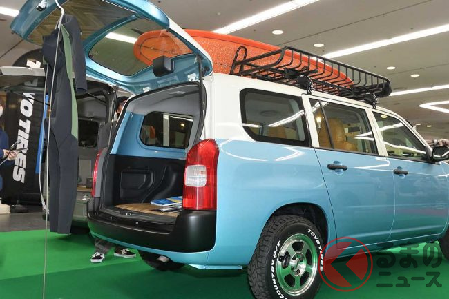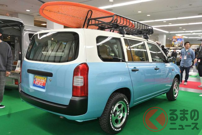 トヨタ「プロボックス」が“車高アゲ”オフロード仕様に激変!? 丸目がめちゃオシャな「サーフスタイル」お披露目!