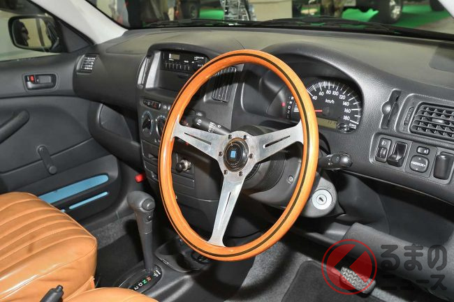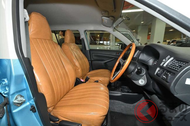 そんなプロボックスのカスタマイズカーとして、コエダ自動車は「サーフスタイル」なる仕様で、丸形ヘッドライトを装着。フロントグリルの「TOYOTA」エンブレムとともにレトロでスタイリッシュな外観を実現しました。