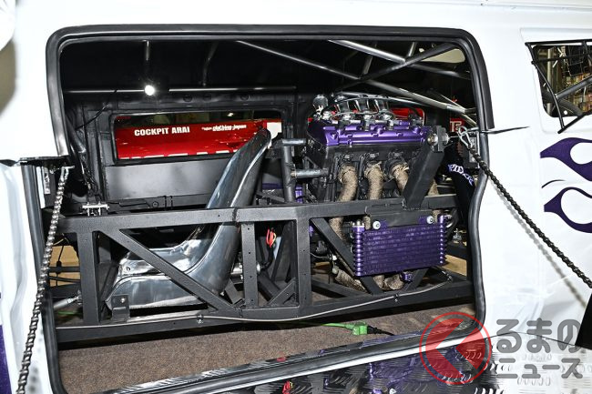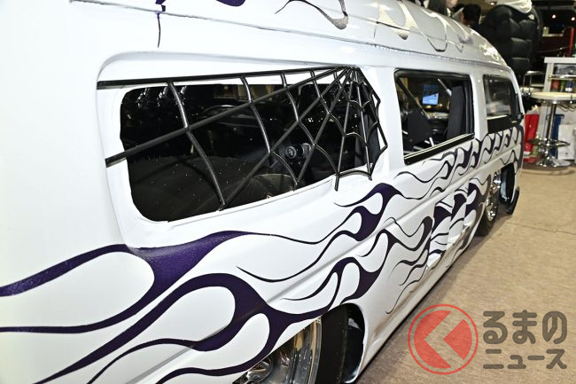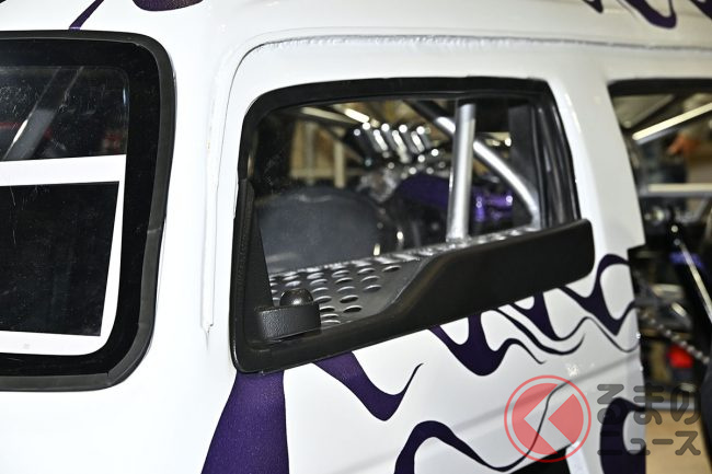 エクステリアではルーフやサイドの全体にわたって、光沢のある紫色のファイアーパターンの塗装があしらわれていることも特徴的で、アメリカンな雰囲気のある世界観が感じられます。