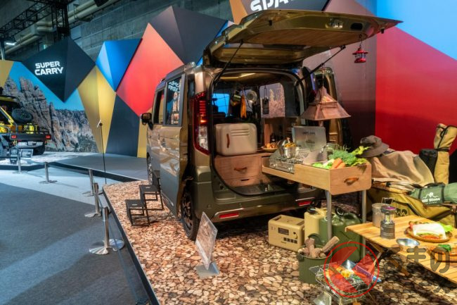 そんな中、スズキが「東京オートサロン2024」で公開したのが、今回「大阪オートメッセ2024」でも出展した「スペーシアギア パパボクキッチン」。公式サイトでは「自然の中で趣味やレジャーに使いたくなるスペーシアのコンセプトモデル」「親子でアウトドアや料理を一緒に楽しむ」などと記載している通り、アウトドア風のカスタムが凝らされています。