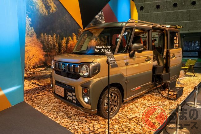 2024年2月10日から12日にかけ行われた「大阪オートメッセ2024」。このイベントで、スズキは「スペーシア」のカスタムコンセプトモデルである「スペーシアギア パパボグカスタム」を展示しました。
