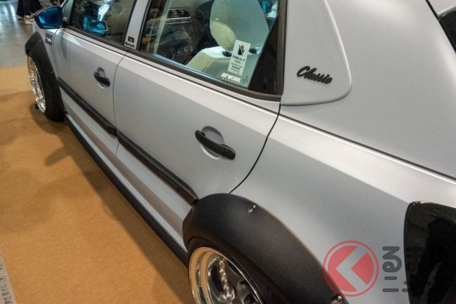 1980年代のレーシングカーを思わせるデザインが施された「クラシック ポロ」特別モデルについて、会場のスタッフに話を聞いたところ「大阪オートメッセはカスタムカーイベントですので、それに合わせてクラシック ポロの良さを突き詰めてみました」とのこと。